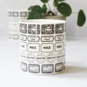 And these distinctive miniature drawings are then applied to Fine Bone China, textiles, paper and other materials creating a unique range of black and white merchandise.