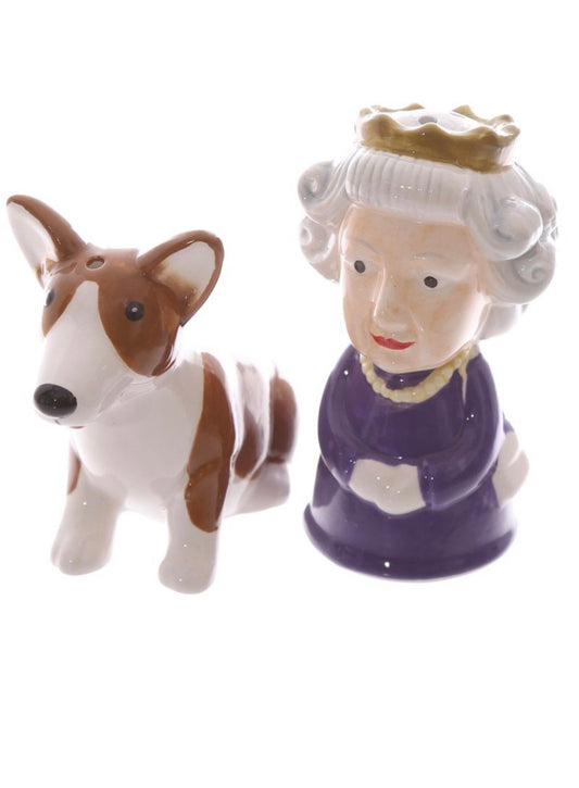 Ceramic Salt & Pepper Set- Queen & Corgi